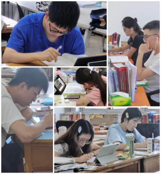 驕陽似火的盛夏,崇文樓403考研自習室涼爽宜人,同學們熱情高漲,干勁十足。老師們走進考研自習室,勉勵同學們一是要拿出勤學肯干的“鉆勁”,考研復習是一個需要積累的過程,不可能一蹴而就,學如弓弩方可才如箭鏃,當前正處于學習的黃金時期,應該把學習作為一種責任、一種精神、一種生活方式,讓勤奮學習成為青春遠航的動力,讓增長本領(lǐng)成為青春搏擊的能量。二是要拿出開鎖解結(jié)的“巧勁”,考研復習是一場攻堅戰(zhàn),“磨刀不誤砍柴工”,應該堅持科學規(guī)劃、勞逸結(jié)合,合理規(guī)劃好學習與休息時間,注重健康飲食,進行適當?shù)捏w育鍛煉,關(guān)注自我心理狀況,適時地調(diào)整狀態(tài),養(yǎng)成樂觀、理性、平和的心態(tài)。三是要拿出久久為功的韌勁,考研復習是一場持久戰(zhàn),需要長期付出辛勞,不能心浮氣躁、淺嘗輒止,而應循序漸進、水滴石穿,更要慎終如始,“行百里者半九十”,只有以堅強的意志做后盾,百折不撓、越戰(zhàn)越勇,才能在最后階段擁有戰(zhàn)勝困難的信心和艱苦奮斗的實力,從而取得最終勝利。
