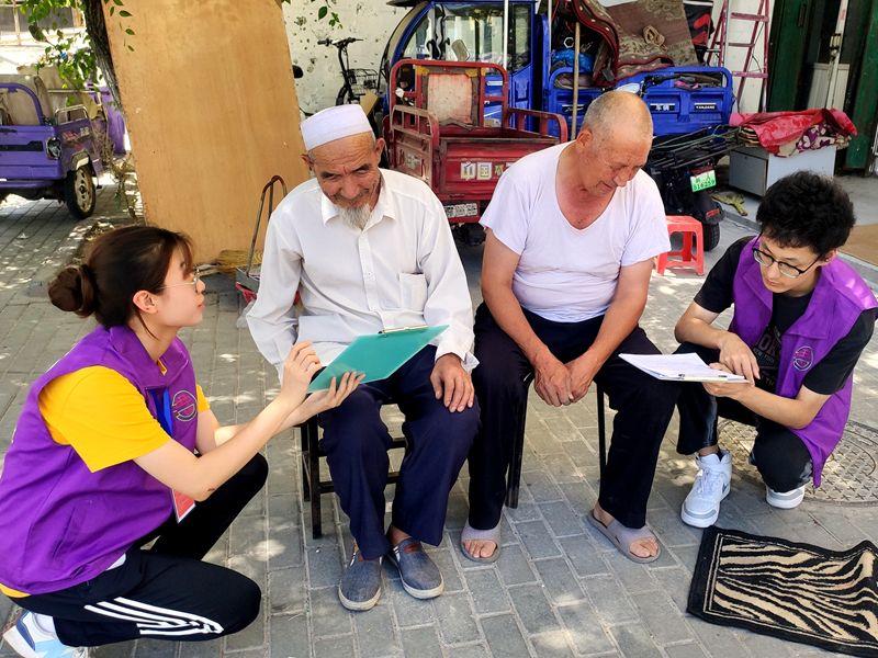 這樣的感悟同樣來自參加了社區(qū)服務工作后的其他隊員。7月5日,團隊進行了為期一天的社區(qū)服務活動,在紅廟子片區(qū)福地社區(qū)的整理文件、接聽電話、門崗值班等工作,讓隊員們對新疆發(fā)展的認知又有新的理解。