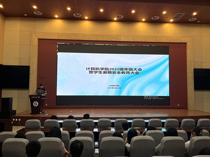 6月26日晚,計算機學(xué)院在鄠邑校區(qū)弘石報告廳召開2022級學(xué)生暑期安全教育大會,2022級輔導(dǎo)員李晨、姚謙及2022級全體學(xué)生參加。