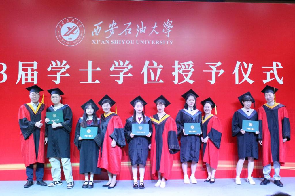 最后,學(xué)院領(lǐng)導(dǎo)及教授委員會(huì)委員為學(xué)士學(xué)位獲得者授予學(xué)位。王君萍,吳勛、李春霄,裴旭東、吳文潔、梁芳、楊睿娟、陳敏靈等8位老師分別為學(xué)士學(xué)位獲得者撥穗、授予學(xué)位并送上美好祝福。全體成員起立共唱校歌《輝煌明天》,經(jīng)濟(jì)管理學(xué)院2023屆本科畢業(yè)生學(xué)士學(xué)位授予儀式圓滿結(jié)束。