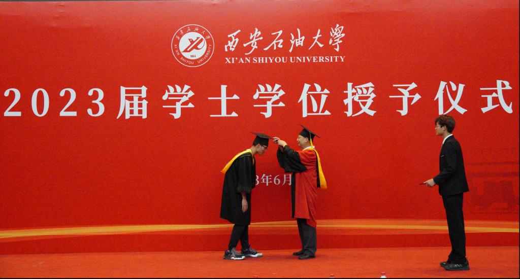 6月19日下午,我院2023屆學(xué)士學(xué)位授予儀式在鄠邑校區(qū)圖書館弘石報(bào)告廳隆重舉行,217名學(xué)士學(xué)位獲得者依序上臺(tái)撥穗正冠,為四年青春畫上了完美的句號(hào)。