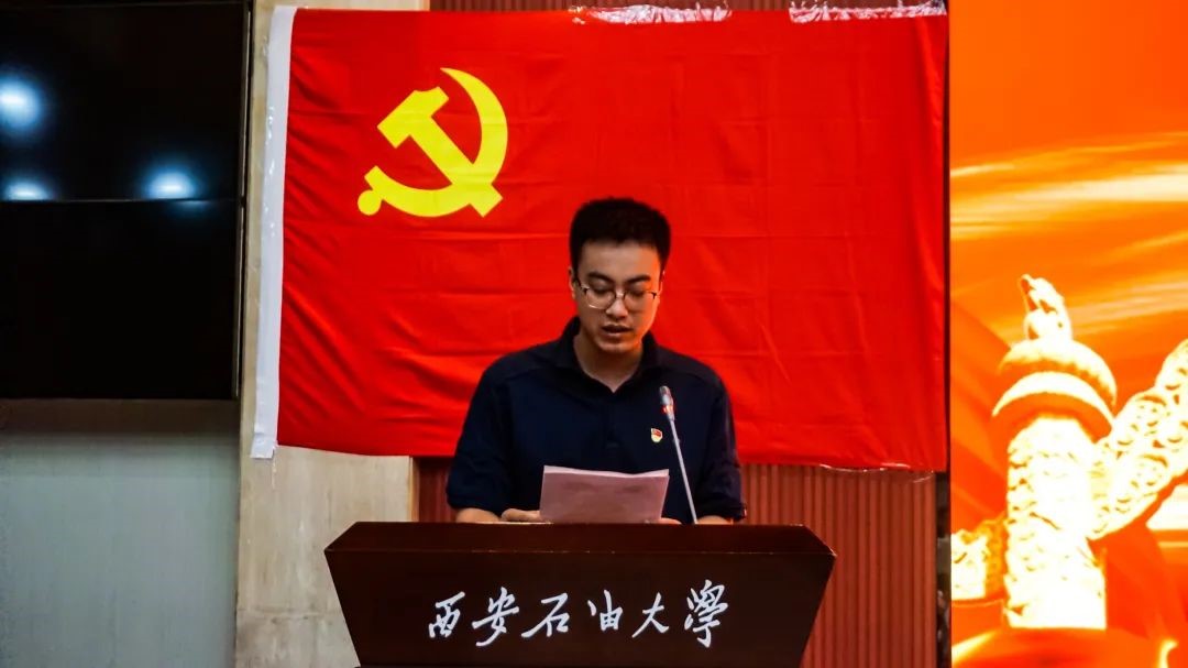 預(yù)備黨員代表王班騫同志分享入黨初心,號召學(xué)生黨員同志們做一個心中有夢、眼里有光的奮斗者,在風(fēng)華正茂的年紀(jì)書寫青春的新篇章,為實現(xiàn)中華民族的偉大復(fù)興而努力奮斗。
