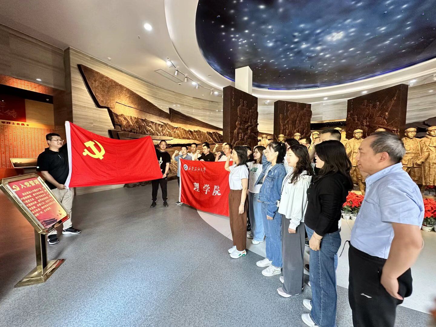在東征會(huì)議舊址,大家認(rèn)真聆聽講解員講述東征會(huì)議的背景、內(nèi)容,領(lǐng)悟東征精神和偉大意義。大家分別參觀了東征會(huì)議室及毛澤東、周恩來(lái)、聶榮臻等同志的舊居。在一幅幅歷史照片和實(shí)物前,同志們認(rèn)真駐足觀看,無(wú)不被革命前輩的英勇事跡所感動(dòng)。通過(guò)現(xiàn)場(chǎng)教育,全體人員深切感受到了革命先輩舍生忘死、矢志不渝的崇高精神,自覺對(duì)照自己和先輩在黨性上的差距,更加堅(jiān)定了理想信念,進(jìn)一步激發(fā)了干事創(chuàng)業(yè)的熱情。參觀現(xiàn)場(chǎng),理學(xué)院黨委書記廖敏帶領(lǐng)全體教工黨員重溫入黨誓詞。