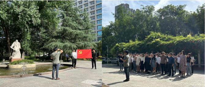 畢業(yè)生文明離校之際,2020級研究生黨支部以主題教育為主線,進行“石油精神”、“鐵人精神”再教育做好離校前各項工作,組織了次主題黨日活動?;顒娱_始全體黨員同志在李超偉老師的帶領(lǐng)下面向黨旗,在鐵人雕像前重溫入黨誓詞,進行莊嚴(yán)宣誓:牢記初心使命,堅定理想信念,弘揚傳承鐵人精神,學(xué)石油,愛石油,奉獻石油,走向工作崗位,創(chuàng)造美好未來,實現(xiàn)自己的人生價值。