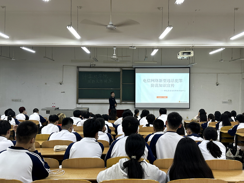 為了提高學(xué)生們對(duì)于詐騙問(wèn)題的認(rèn)識(shí),加強(qiáng)個(gè)人信息保護(hù)意識(shí),5月29日晚,計(jì)算機(jī)學(xué)院在鄠邑校區(qū)博覽樓121教室舉辦防范電信詐騙專題講座。本次講座由灃京路派出所的鄭昊警官擔(dān)任主講嘉賓,學(xué)院2022級(jí)輔導(dǎo)員李晨、姚謙以及2022級(jí)全體學(xué)生干部參加。