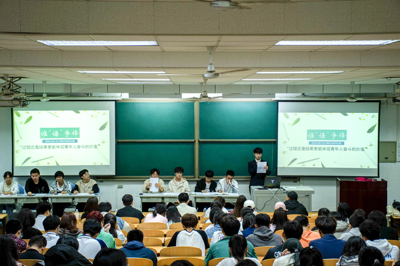 5月15日至28日,計(jì)算機(jī)學(xué)院舉辦了“誰(shuí)‘語(yǔ)’爭(zhēng)鋒”辯論賽。經(jīng)班級(jí)前期選拔,學(xué)院預(yù)賽,共有8名同學(xué)脫穎而出進(jìn)入決賽。決賽于5月25日晚在鄠邑校區(qū)博覽樓134教室舉辦。學(xué)院2020級(jí)輔導(dǎo)員劉亭普、2022級(jí)輔導(dǎo)員姚謙及學(xué)生會(huì)主席團(tuán)代表?yè)?dān)任評(píng)委,2022級(jí)學(xué)生共計(jì)300余人觀賽。