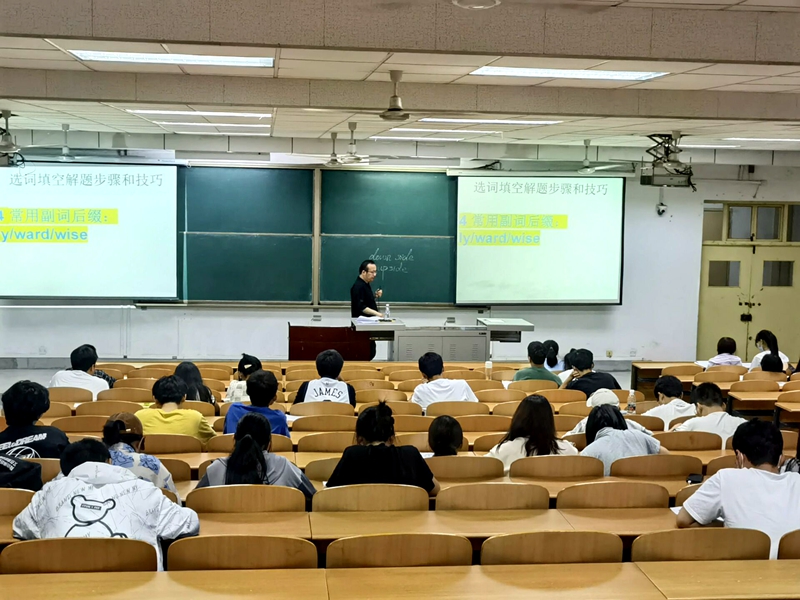 為進一步夯實學生的英語基礎,助力學生奮戰(zhàn)大學英語四級考試,進一步提升我院學生的大學英語四級考試的通過能力,5月17日晚上,計算機學院在博思樓139教室舉辦大學英語四級考試沖刺階段培訓活動,本次活動邀請好勝教育輔導老師付林主講,2021級、2022級部分學生參加了此次活動。