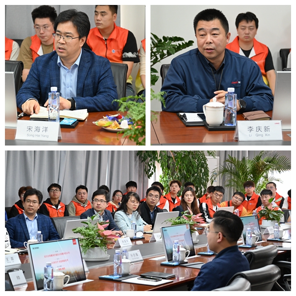 李慶新對宋海洋一行表示熱烈歡迎,并將企業(yè)的基本情況、發(fā)展歷程、業(yè)務(wù)分布、企業(yè)文化及發(fā)展理念等方面進行了簡單介紹。他表示,企業(yè)秉承“穩(wěn)健可靠、科技引領(lǐng)”的品牌定位,聚焦科技創(chuàng)新,構(gòu)建單晶硅片、電池組件、工商業(yè)分布式解決方案、綠色能源解決方案、氫能裝備五大業(yè)務(wù)板塊,針對目前的發(fā)展規(guī)模和趨勢,企業(yè)對于高素質(zhì)人才的需求是非常迫切的,“隆基班”的成立非常及時,既為學生解決了就業(yè)問題,又為企業(yè)注入了新鮮血液,為學生提供了更為廣闊的發(fā)展平臺和就業(yè)機會,真正實現(xiàn)了學校企業(yè)學生三贏的局面,希望雙方能繼續(xù)拓展人才培養(yǎng)途徑和方式,全面推動校企深度融合。
