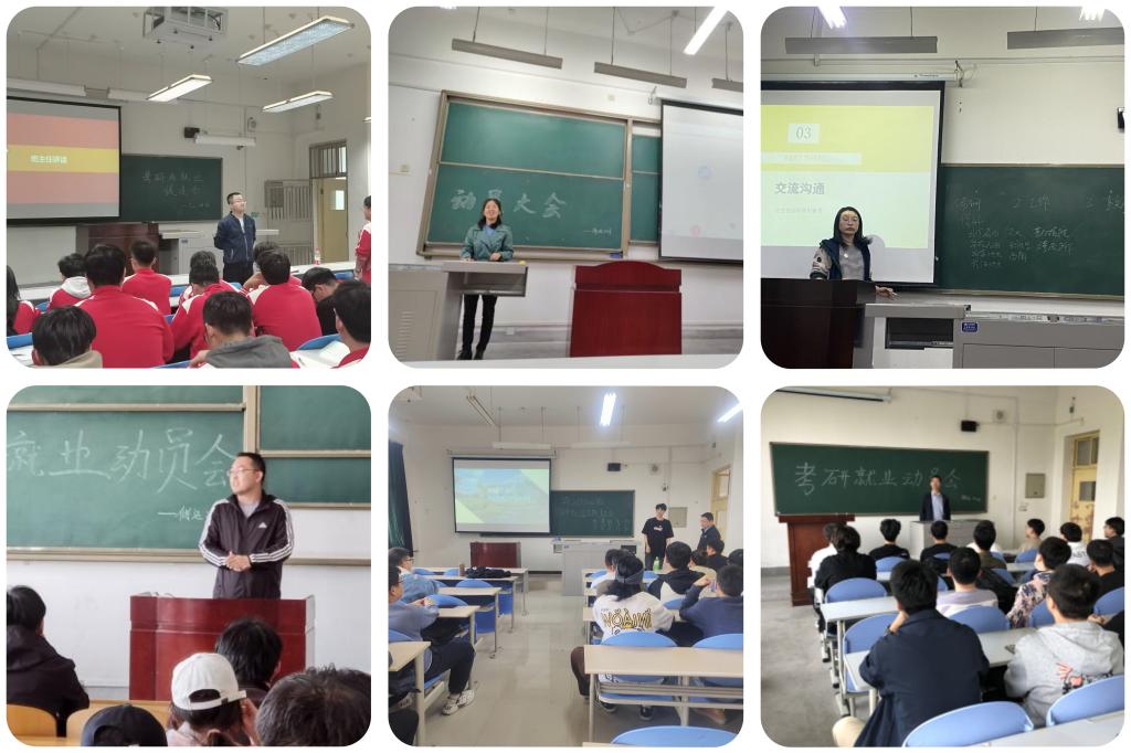 大三重在強化氛圍營造和組織引導(dǎo),輔導(dǎo)員和班主任認真分析目前考研與就業(yè)政策,分別從歷年考研形勢、擇校重要性、時間規(guī)劃、資料選擇、心態(tài)調(diào)整等方面分享了考研的心路歷程,為學(xué)生備戰(zhàn)考研提供了良好的指引與幫助。同時,邀請專業(yè)教師、優(yōu)秀校友等向?qū)W生講解專業(yè)特點、專業(yè)優(yōu)勢、發(fā)展方向、就業(yè)前景等,并鼓勵同學(xué)們走出校園,盡早的了解崗位需求。發(fā)揮學(xué)習典型的示范輻射作用,促進學(xué)院學(xué)風建設(shè)。