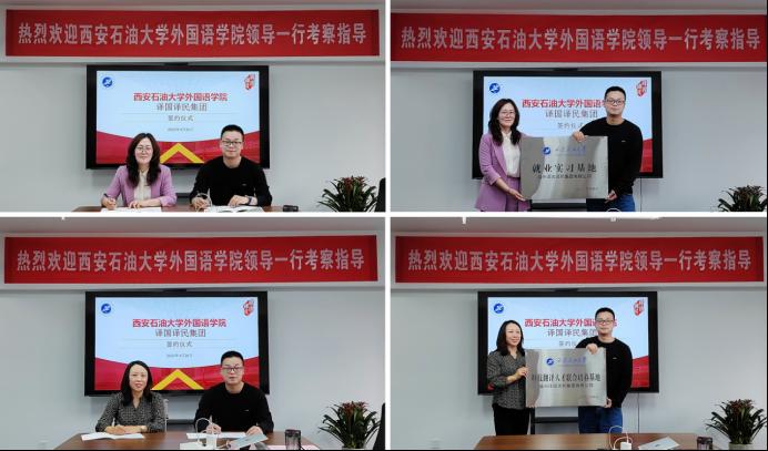座談會后,田虹霞和劉輝分別代表學院與譯國譯民集團西安公司簽訂就業(yè)實習基地、研究生聯(lián)合培養(yǎng)基地協(xié)議并授牌。