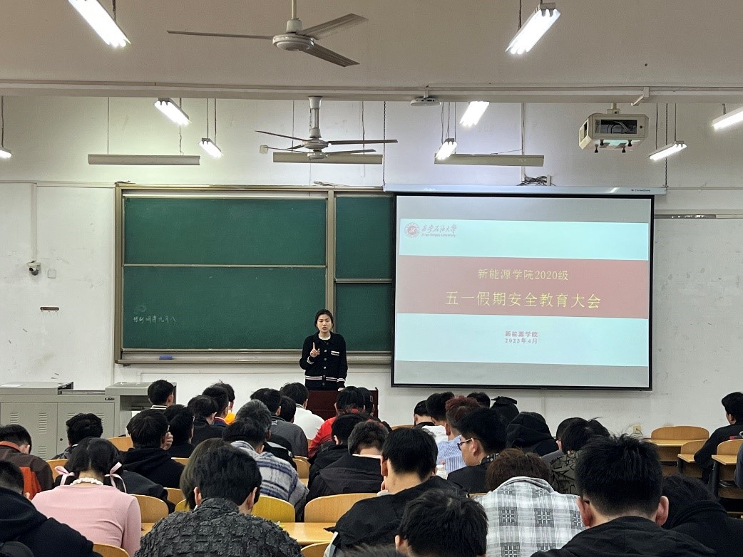 五一假期將至,為強化假期安全教育,提高學生自我防護意識,確保學生度過一個安全、快樂、充實的假期,4月24日-26日,新能源學院各年級扎實開展五一勞動節(jié)學生安全教育主題大會,會議由各年級輔導員老師主持,學院全體學生參會。