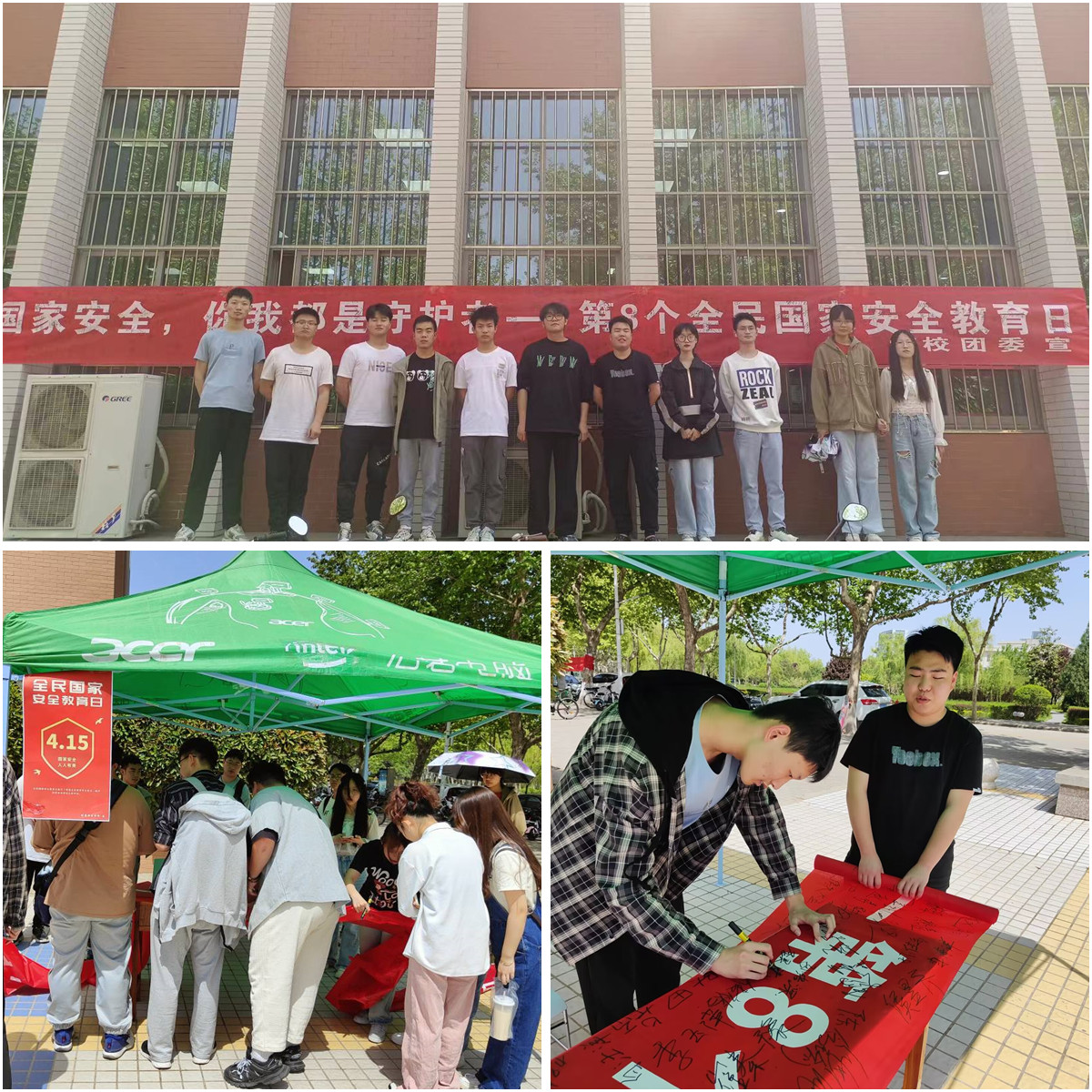 2023年4月15日是第八個全民國家安全教育日,為深入貫徹習(xí)近平總書記總體國家安全觀,增強全民國家安全意識和素養(yǎng),夯實以新安全格局保障新發(fā)展格局的社會基礎(chǔ),推動全民國家安全教育日宣傳,校團委組織開展了國家安全教育主題活動,通過微信平臺推送、制作宣傳海報、懸掛宣傳條幅、設(shè)置國家安全教育主題宣傳點、條幅簽名等形式,大力開展國家安全宣傳教育。