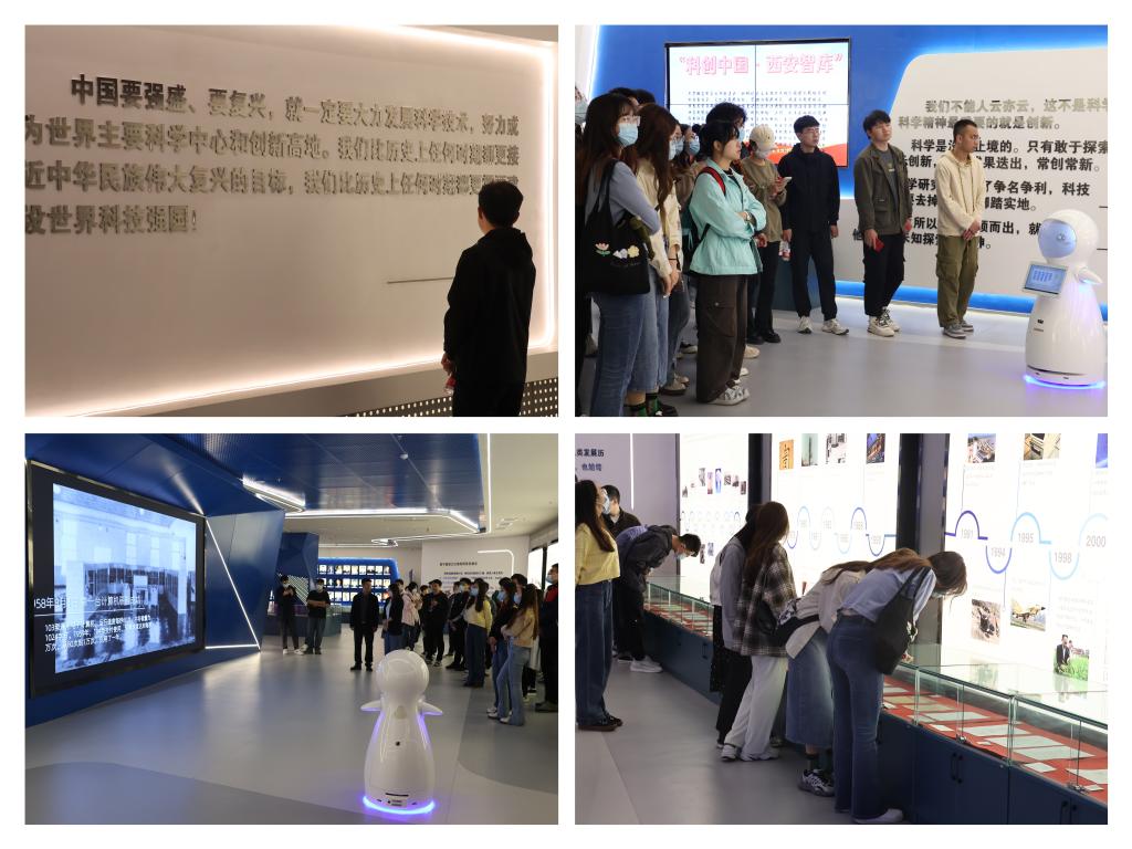 西安科學(xué)家博物館是全國首個(gè)地方性科學(xué)家博物館,整館分“勇攀高峰、重點(diǎn)產(chǎn)業(yè)、科技成果、成果轉(zhuǎn)化、產(chǎn)品展示、創(chuàng)新突破”等篇章。參觀過程中,研究生們不時(shí)駐足觀看,交流參觀體會(huì)。在智能講解機(jī)器人小博的帶領(lǐng)下,大家仔細(xì)觀摩了重點(diǎn)產(chǎn)業(yè)展區(qū)長征系列火箭模型和西安地鐵二號(hào)線模型,近距離感受了西安科技制造企業(yè)和高校的科技成果與科技創(chuàng)新帶來的魅力。