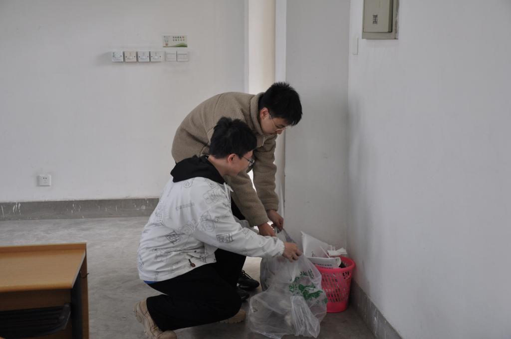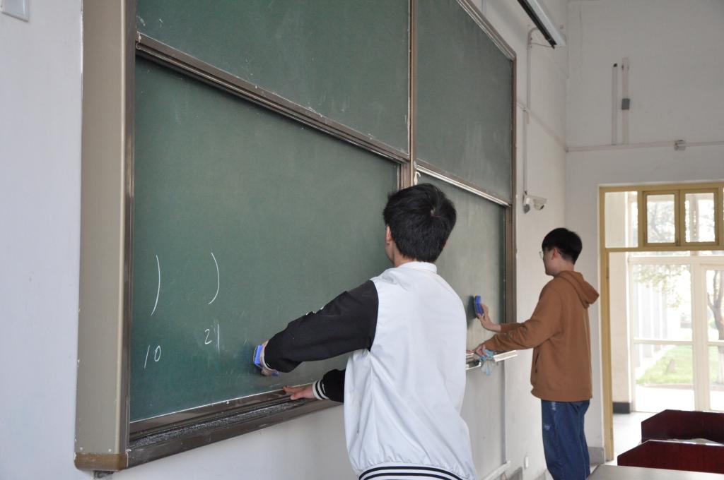 活動開始前,活動負責人強調相關注意事項,為每組志愿者分發(fā)垃圾袋及衛(wèi)生工具。隨后,同學們進入教室開展清潔活動,以擦拭黑板、講桌、課桌、椅子,整理粉筆、板擦,清理垃圾、雜物,打掃過程井然有序。清掃工作結束后,由活動負責人進入教室檢查衛(wèi)生打掃情況,收集志愿者在教室中清理的垃圾雜物,分類處理后放置在指定區(qū)域。