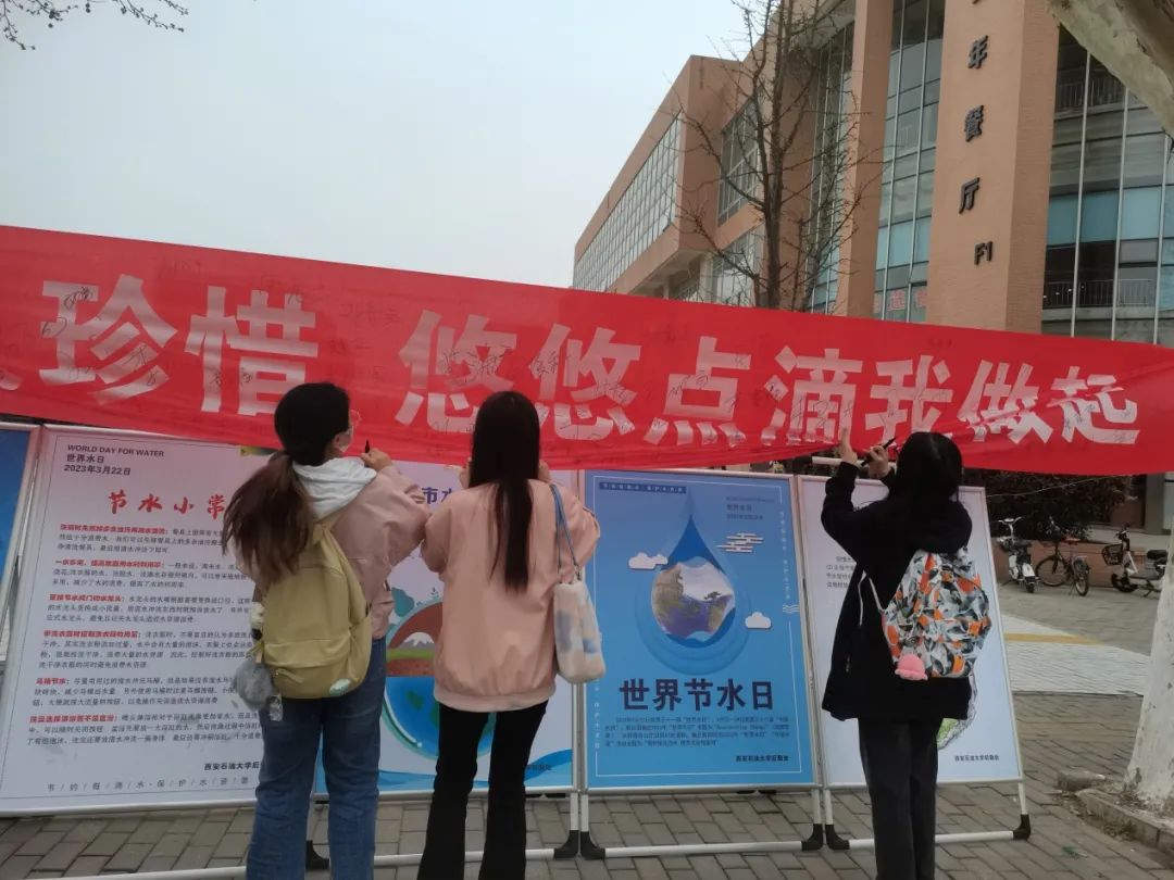 為深入落實(shí)節(jié)水優(yōu)先方針,推進(jìn)實(shí)施國(guó)家節(jié)水行動(dòng),我校積極響應(yīng)陜西省“節(jié)水中國(guó)、你我同行”主題宣傳活動(dòng),3月22日至28日,我校在雁塔校區(qū)、鄠邑校區(qū)開展了節(jié)水宣傳周活動(dòng)?;顒?dòng)周期間采取懸掛節(jié)水宣傳條幅、擺放節(jié)水宣傳展板、發(fā)放節(jié)能環(huán)保手冊(cè)、師生簽名等活動(dòng),并在中午人流密集的學(xué)生餐廳門口向?qū)W生宣講我國(guó)面臨的嚴(yán)峻水情,以及節(jié)水知識(shí)。