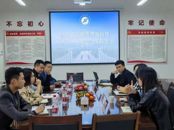 王瑩副書記首先對精景慧城(西安)科技有限公司蒞臨學(xué)院洽談合作表示熱烈歡迎,并介紹了學(xué)院的學(xué)生概況、專業(yè)分布、社會(huì)實(shí)踐等情況。隨后劉群總經(jīng)理介紹了公司的主營范圍、產(chǎn)品優(yōu)勢及發(fā)展規(guī)劃,并表示歡迎學(xué)生在校期間來公司開展社會(huì)實(shí)踐活動(dòng)。雙方就共建社會(huì)實(shí)踐基地、實(shí)習(xí)實(shí)訓(xùn)基地及畢業(yè)生就業(yè)實(shí)習(xí)等方面進(jìn)行深度洽談。