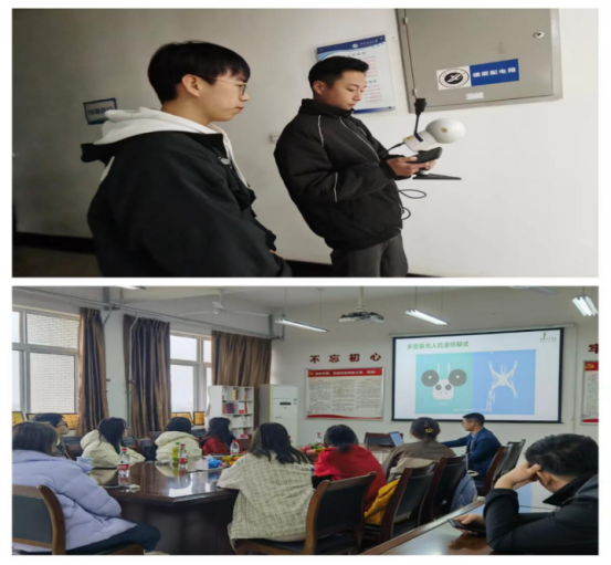 座談會(huì)結(jié)束后,企業(yè)工程師吳圓和周珂分別向?qū)W生代表進(jìn)行了無人機(jī)飛行講解和全站掃描儀的演示,并一同參觀了學(xué)院三維可視化建模及應(yīng)用實(shí)驗(yàn)室。