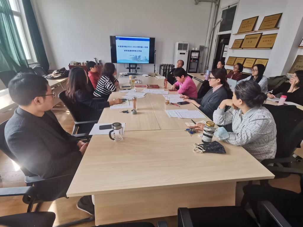 為不斷提高教學質量、穩(wěn)定教學秩序、促進教學改革,進一步加強我院研究生教材選用與管理工作,保證研究生教材選用質量,外國語學院于2023年3月6日在727會議室召開了2022-2023學年第2學期研究生教材選用審核會。學院教材工作領導小組成員及研究生任課教師參會。會議由副院長劉輝主持。