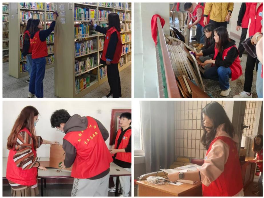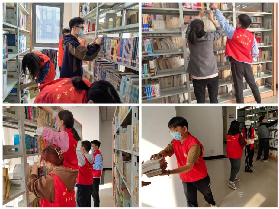 圖書館環(huán)境是文明校園的重要組成部分,圖書館內(nèi)干凈整潔,人人受益。同學(xué)們積極響應(yīng)志愿號召,35日和36對兩校區(qū)圖書館進行圖書整理、書架擦洗、地面清潔等志愿工作。