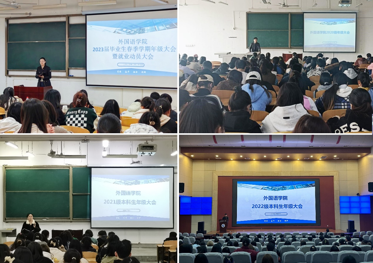 2月27日、28日,外國語學院各年級分別在鄠邑校區(qū)B112、B121、B221、弘石學術報告廳召開年級大會。院黨委副書記王業(yè)青、全體本科生參加會議,會議由各年級輔導員主持。