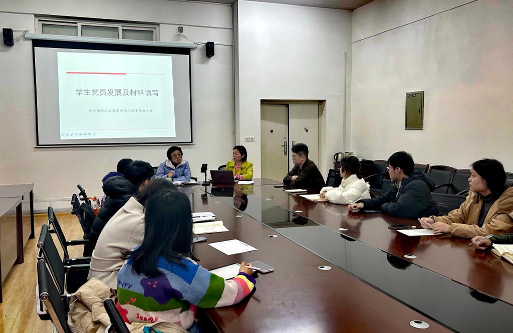 電子工程學(xué)院于2月27日晚在鄠邑校區(qū)行知樓321組織開展學(xué)生黨支部書記業(yè)務(wù)培訓(xùn)交流會(huì),學(xué)院黨委副書記畢軼慧、兼職組織員李君和學(xué)生黨支部書記線上線下同步參加會(huì)議。