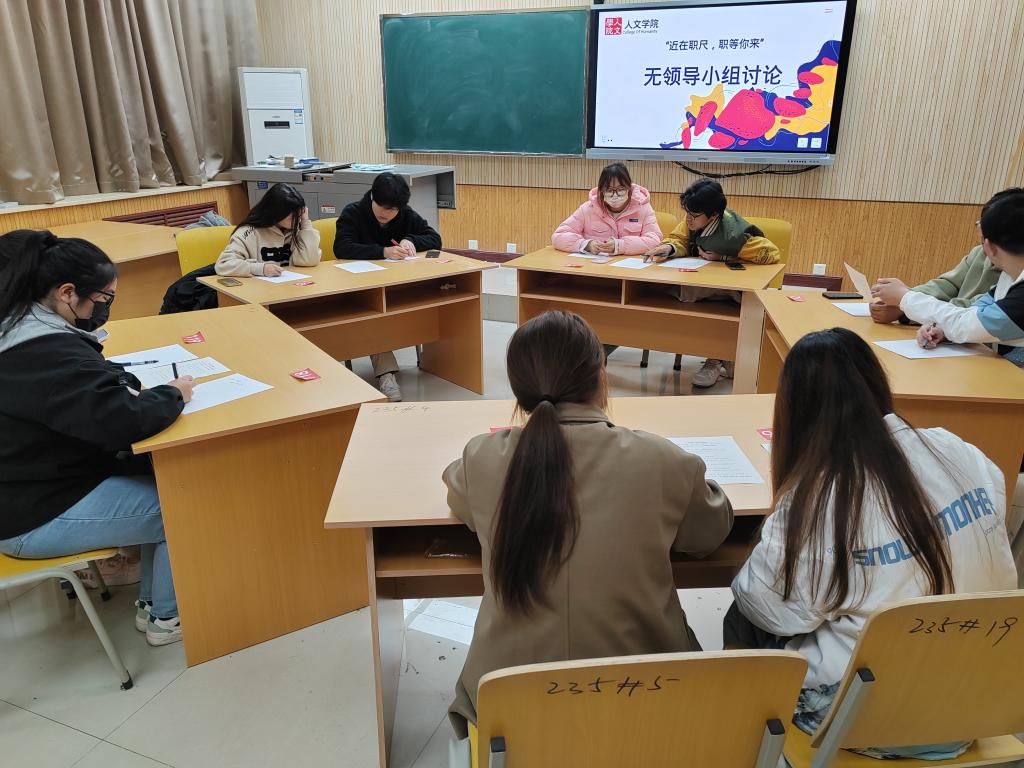 無領(lǐng)導(dǎo)小組討論,增強(qiáng)群面實戰(zhàn)力。為了幫助學(xué)生提前適應(yīng)面試流程,提高面試技巧,規(guī)避面試短板,人文學(xué)院組織畢業(yè)生分組分批開展無領(lǐng)導(dǎo)小組討論模擬群面,學(xué)生輔導(dǎo)員擔(dān)任評委。模擬面試分為主持人講解面試形式、無領(lǐng)導(dǎo)小組討論、評委總結(jié)三個環(huán)節(jié)。模擬討論中,同學(xué)們根據(jù)選題,結(jié)合生活常識、知識積累、職業(yè)理解各抒己見,討論過程熱烈,匯報條理清晰。討論結(jié)束后,評委總結(jié)無領(lǐng)導(dǎo)小組討論的注意事項,對表現(xiàn)優(yōu)異的參與學(xué)生給予表揚(yáng),對存在短板的同學(xué)加以鼓勵。同學(xué)們在模擬面試中深化了對團(tuán)體面試的認(rèn)識和理解,了解了面試禁忌,明確了在以后的面試中適合承擔(dān)的角色。