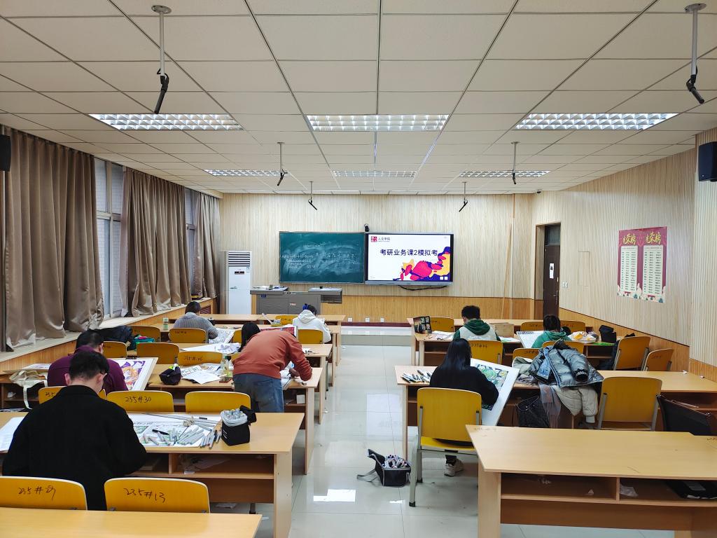 沙場練兵,磨煉實戰(zhàn)技能。為幫助學(xué)生熟悉考試流程,提高繪畫考試技巧,11月29日下午2點,學(xué)院組織考研學(xué)生在人文經(jīng)管樓235教室開展時長3小時的業(yè)務(wù)課2模擬考試。考試中,學(xué)生合理規(guī)劃時間、優(yōu)化設(shè)計思路,呈現(xiàn)出多樣的作品??荚嚭?,學(xué)院組織專業(yè)老師進(jìn)行點評指導(dǎo),幫助學(xué)生查漏補(bǔ)缺,完善作品。