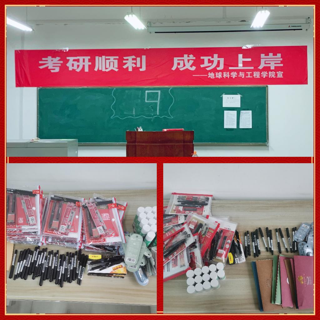 “研”途相伴,溫情護航——2022年考研筆試將近,考研學子進入最后的沖刺階段,為鼓勵學生們堅定信念及以積極的心態(tài)迎接考研。地球科學與工程學院為考研學子們送上“福袋”。向每一名考研同學發(fā)放了考研文具大禮包,禮包內(nèi)容豐富,包含各類考試專用文具,為同學們送上迎戰(zhàn)考試的“利器”。文具上印著“旗開得勝”、“前程似錦”、“金榜題名”等字樣,處處都體現(xiàn)著“實用”與“暖心”,飽含了學院對考研同學們的真摯問候和深切祝福。
