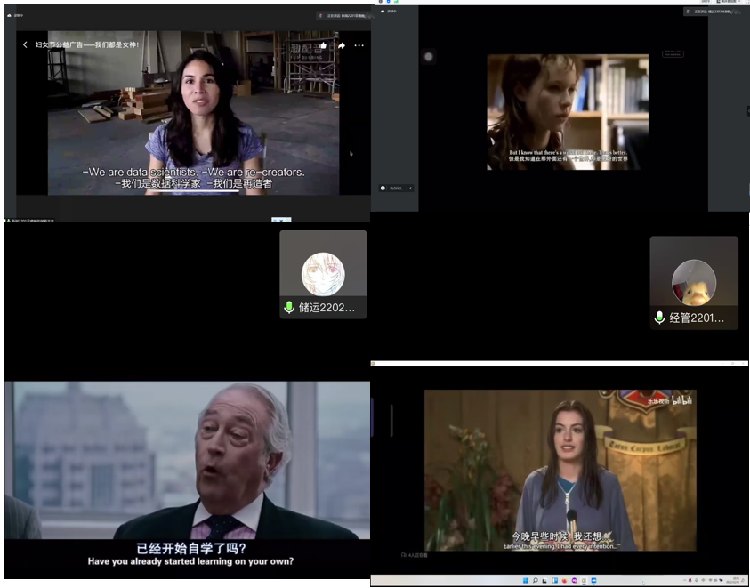 大賽以英語(yǔ)電影為載體,進(jìn)行了五分鐘內(nèi)的英語(yǔ)電影選段配音。通過為期2個(gè)月的初賽選拔,經(jīng)大學(xué)英語(yǔ)教師推薦、初評(píng),最終14位同學(xué)脫穎而出進(jìn)入決賽?!芭_(tái)上三分鐘,臺(tái)下十年功。“ 同學(xué)們對(duì)自己的作品反復(fù)打磨,精益求精,充分體現(xiàn)作品內(nèi)涵,模仿語(yǔ)音語(yǔ)調(diào),克服了當(dāng)前疫情的影響,多次彩排適應(yīng)了線上比賽的節(jié)奏,給大家呈現(xiàn)了一場(chǎng)聽覺盛宴。同學(xué)們氣定神閑、語(yǔ)音純正,一個(gè)個(gè)精彩的演繹把現(xiàn)場(chǎng)師生們帶入不同的場(chǎng)景里,“聲”臨其境體驗(yàn)英語(yǔ)口語(yǔ)魅力。最終,張莎悅同學(xué)獲得一等獎(jiǎng),戴傳裕和耿瑜璐同學(xué)獲得二等獎(jiǎng),楊盛凱、林資忻等11位同學(xué)獲得三等獎(jiǎng)和優(yōu)秀獎(jiǎng)。