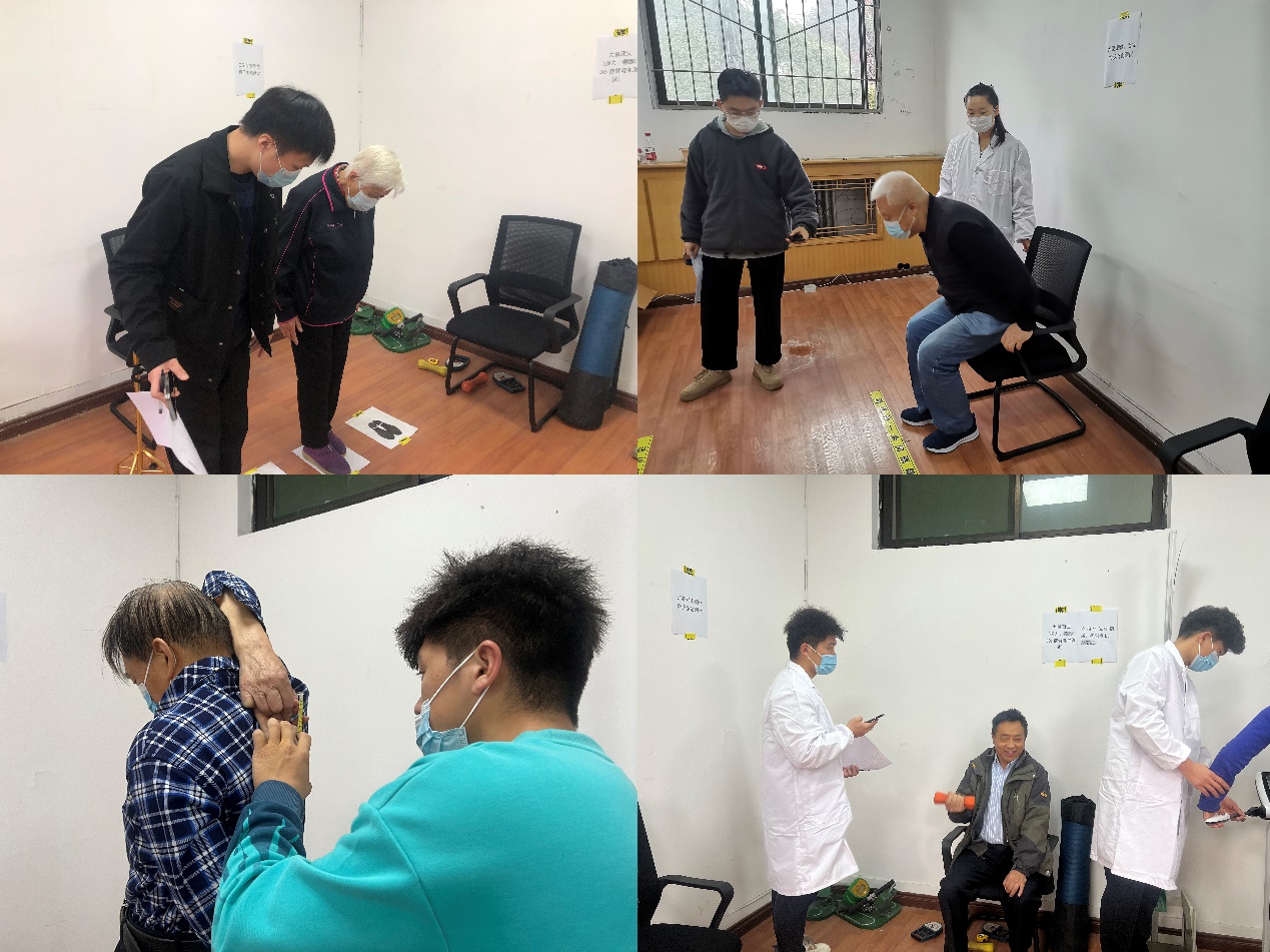 此次活動是體育學(xué)院為進(jìn)一步培養(yǎng)本院學(xué)生服務(wù)體育工作,解決實(shí)際問題能力,助力我校教職工體質(zhì)健康水平提高而舉辦?;顒悠陂g,體育學(xué)院肌少證課題組成員對廣大教職工進(jìn)行了肌少癥健康知識宣講,提高老年人對肌少癥的重視程度;隨后對老年人進(jìn)行了關(guān)于身體成分(包括身高、體重、身體質(zhì)量指數(shù)、蛋白質(zhì)含量、無機(jī)鹽含量、脂肪含量、肌肉含量)、肌肉力量(包括握力、上肢力量、下肢力量)和身體功能(包括平衡、靈敏、柔韌)等方面的測量,使老年人更加了解自己的身體狀況。