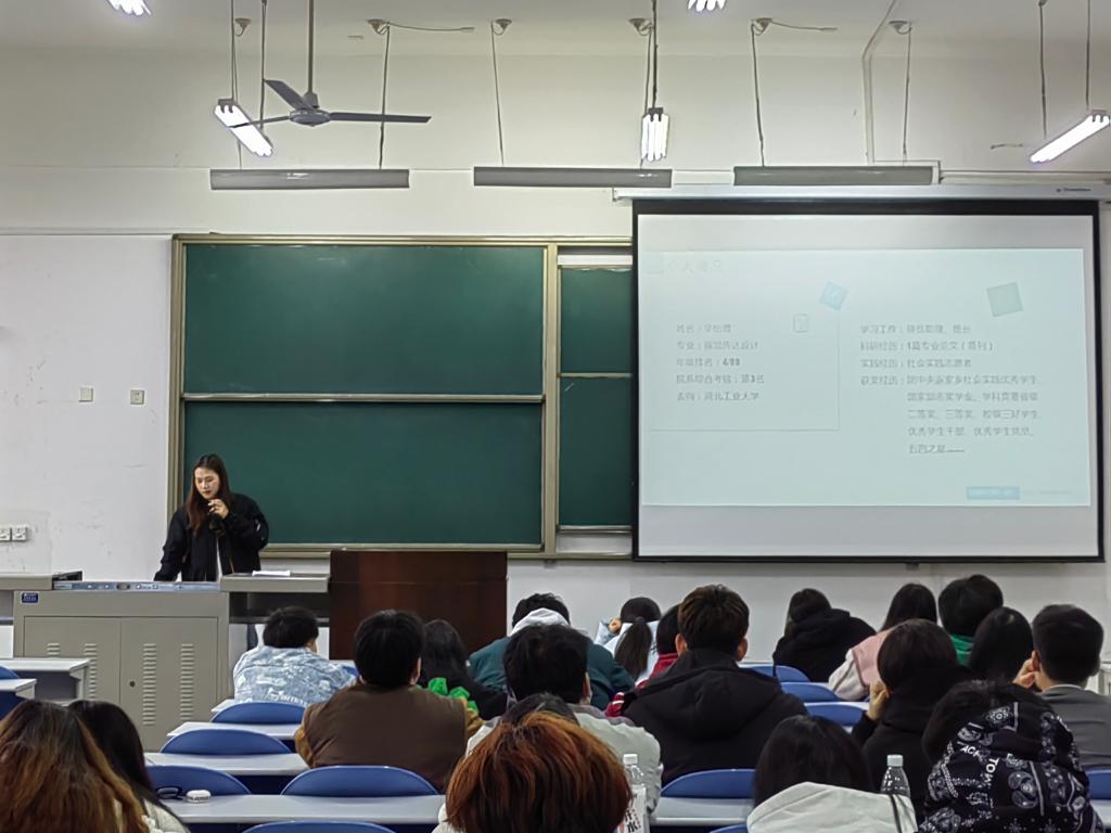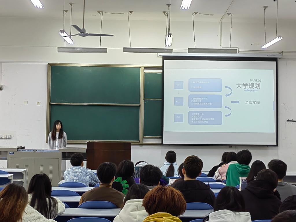 相凱馨同學(xué)從個(gè)人情況、大學(xué)規(guī)劃、學(xué)習(xí)經(jīng)驗(yàn)等方面與大家分享自己的經(jīng)歷。她鼓勵(lì)同學(xué)們要多嘗試,走出自己的舒適圈,開(kāi)發(fā)自己的潛能,發(fā)現(xiàn)自己的閃光點(diǎn)。對(duì)于學(xué)習(xí),要多閱讀作品,將復(fù)習(xí)重點(diǎn)放在專(zhuān)業(yè)課的課本上,并從四六級(jí)方面分享自己對(duì)大家的建議,希望大家能夠重視。對(duì)于大學(xué)競(jìng)賽,要多開(kāi)展、精開(kāi)展,從競(jìng)賽中不斷提高自身的能力。