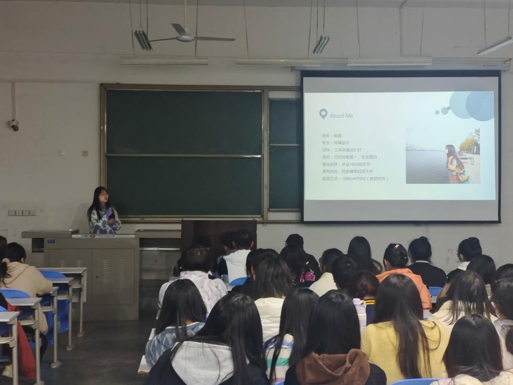 辛怡萱同學(xué)向同學(xué)們?cè)敿?xì)講解了保研推免的資格獲取要求,以及多種保研方法,很詳細(xì)地將準(zhǔn)備資料、院校面試、確定錄取各個(gè)時(shí)間段中的問(wèn)題進(jìn)行解釋?zhuān)陂g不斷回應(yīng)同學(xué)們的疑惑。希望同學(xué)們懂得利用學(xué)校資源,從而彌補(bǔ)自己的不足。最后她特別強(qiáng)調(diào)了設(shè)計(jì)類(lèi)專(zhuān)業(yè)英語(yǔ)四級(jí)的重要性,并將自己學(xué)習(xí)四級(jí)的應(yīng)試技巧進(jìn)行了分享。