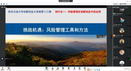 隨后,基于當前國家政策、經(jīng)濟趨勢、企業(yè)導向、技術前沿及生態(tài)環(huán)保等因素,黃老師多方面、多層次、多維度地為同學們講解了風險管理如何在創(chuàng)新創(chuàng)業(yè)過程中更好的應用。