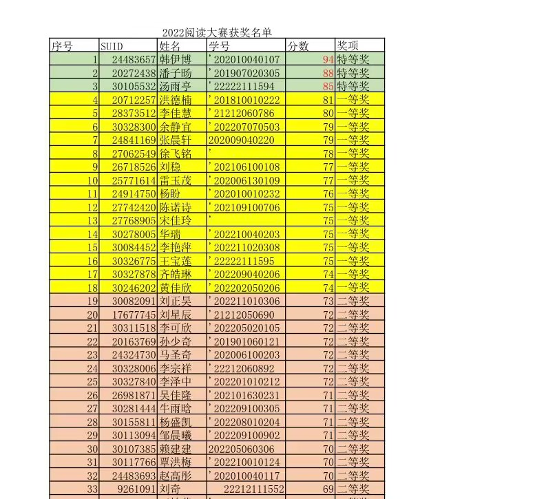 根據(jù)2022年“外研社·國(guó)才杯”全國(guó)英語(yǔ)閱讀大賽省級(jí)復(fù)賽的通知要求,我校外國(guó)語(yǔ)學(xué)院組織開(kāi)展本次“語(yǔ)翼杯”英語(yǔ)閱讀大賽暨2022年“外研社·國(guó)才杯”英語(yǔ)系列比賽校園選拔賽初賽及復(fù)賽。因受疫情影響,本次大賽線上進(jìn)行。在外國(guó)語(yǔ)學(xué)院對(duì)本次賽事的大力宣傳下,各院系同學(xué)們積極踴躍地報(bào)名本次閱讀大賽,報(bào)名人數(shù)達(dá)到600人。外國(guó)語(yǔ)學(xué)院高度重視,負(fù)責(zé)老師積極組織安排選拔賽,經(jīng)過(guò)兩次嚴(yán)格的線上初賽選拔,參賽的492名同學(xué)中有91名同學(xué)進(jìn)入線下復(fù)賽,最終翻譯2001韓伊博,通信1903潘子旸和翻譯研2022湯雨亭等3名同學(xué)以優(yōu)異的成績(jī)脫穎而出獲得特等獎(jiǎng),英語(yǔ)2002洪德楠等15名同學(xué)獲得一等獎(jiǎng),勘探2203劉正昊等25名同學(xué)獲二等獎(jiǎng),英語(yǔ)2101胡雨桐等29名同學(xué)獲得三等獎(jiǎng)。其中三名獲得特等獎(jiǎng)同學(xué)將代表我校參加2022年11月5日舉行的“外研社·國(guó)才杯”全國(guó)大學(xué)生閱讀大賽陜西賽區(qū)的復(fù)賽和決賽。