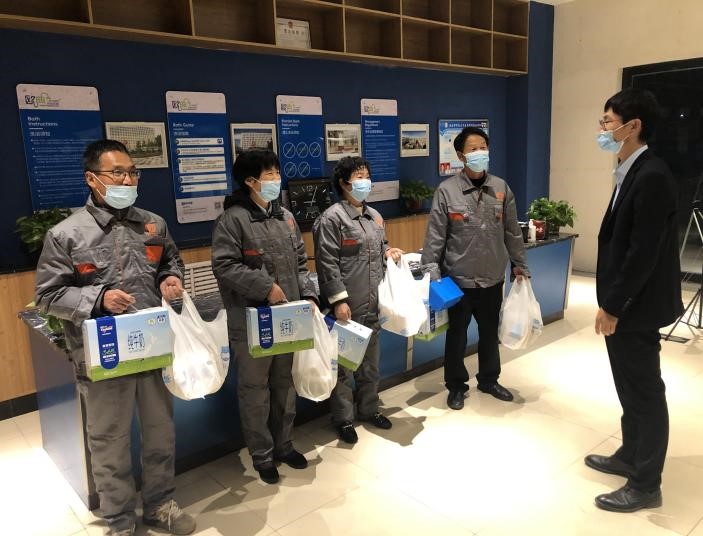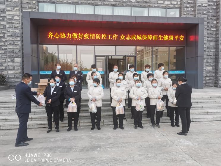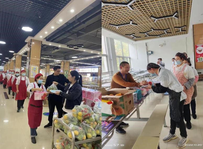 封閉在校,相比平時,工作壓力大,工作時間長;相比在家,生活成本高,無法照顧家庭,后勤處想員工之所想,急員工之所急,會同第三方公司采取各種形式慰問一線員工,體現(xiàn)人文關(guān)懷,發(fā)放牛奶、面包、方便面、飲料、水果、洗護用品、勞保用品等,同時各公司也及時給予入住校園封閉管理的員工相應的生活或工作補貼。