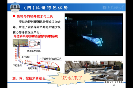 隨后,高國旺重點從學院科研基地、科研方向、科研特色、科研成果轉(zhuǎn)化、學術(shù)交流等方面介紹了學院的科研情況,提到我院的科研創(chuàng)新聚焦于油氣資源勘探開發(fā)領(lǐng)域的“測”“傳”“控”高新技術(shù)研究與儀器裝備的研制,特別是隨著油田數(shù)字化、智能化技術(shù)的引入,我院的學科優(yōu)勢更加明顯。學院在油氣勘探開發(fā)鉆井裝備、測井儀器、注水節(jié)能技術(shù)、長輸管道自動化等方向矢志不渝的深耕多年,取得了一些顯著的科技成果,學院教授創(chuàng)造性的提出“航地”概念。鼓勵同學們一定樹立信心,結(jié)合導師研究方向,深入到實驗室,在導師指導下潛心研究,增強自身的科研能力。
