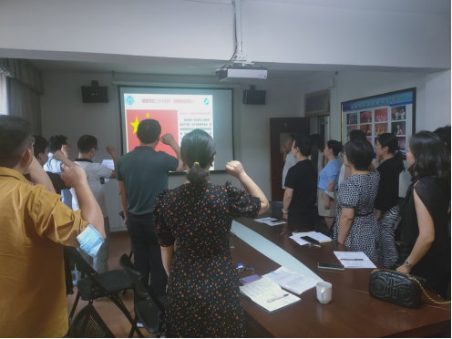 在教師宣誓承諾環(huán)節(jié),由年度校級優(yōu)秀教師趙丹寧老師領(lǐng)誓,全體教職工面向國旗莊嚴宣誓,重溫作為一名光榮的人民教師應(yīng)承擔(dān)的責(zé)任義務(wù)與神圣使命,切實增強教師教書育人責(zé)任感、使命感和榮譽感。