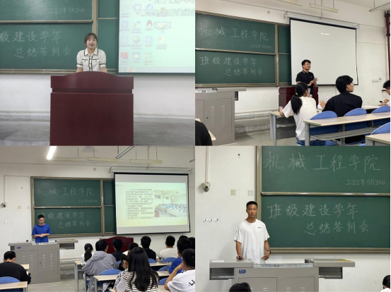 2022624日,機(jī)械工程學(xué)院為進(jìn)一步發(fā)揮班級(jí)組織的育人功能,深入推進(jìn)強(qiáng)基聚力工程,加強(qiáng)學(xué)生班級(jí)建設(shè),充分發(fā)揮學(xué)生自我教育、自我管理、自我服務(wù)功能,機(jī)械工程學(xué)院在B102開展新生班級(jí)建設(shè)總結(jié)答辯會(huì),輔導(dǎo)員劉思文、趙子彤參會(huì)。