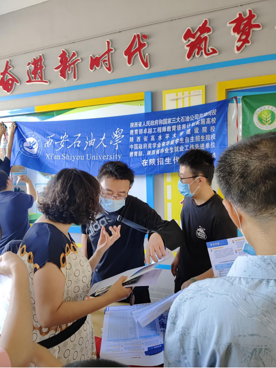 每到一校,招生組先與高中老師進(jìn)行交流,交流結(jié)束后,就面向?qū)W生和家長(zhǎng)開(kāi)展宣傳和咨詢工作。張振軍老師在扶風(fēng)高級(jí)中學(xué)做了一場(chǎng)《陜西省志愿填報(bào)怎么填?》的講座,給家長(zhǎng)和學(xué)生們講解相關(guān)志愿政策,受到家長(zhǎng)和學(xué)生的歡迎。為了幫助參加咨詢活動(dòng)的學(xué)生和家長(zhǎng)更好地了解我校的基本情況和招生政策,招生老師進(jìn)行了細(xì)致、深入的回答,并發(fā)放了招生宣傳材料。招生老師在現(xiàn)場(chǎng)與多位家長(zhǎng)有深入交流,針對(duì)家長(zhǎng)反映的專業(yè)問(wèn)題,招生老師耐心給出了相關(guān)的建議。