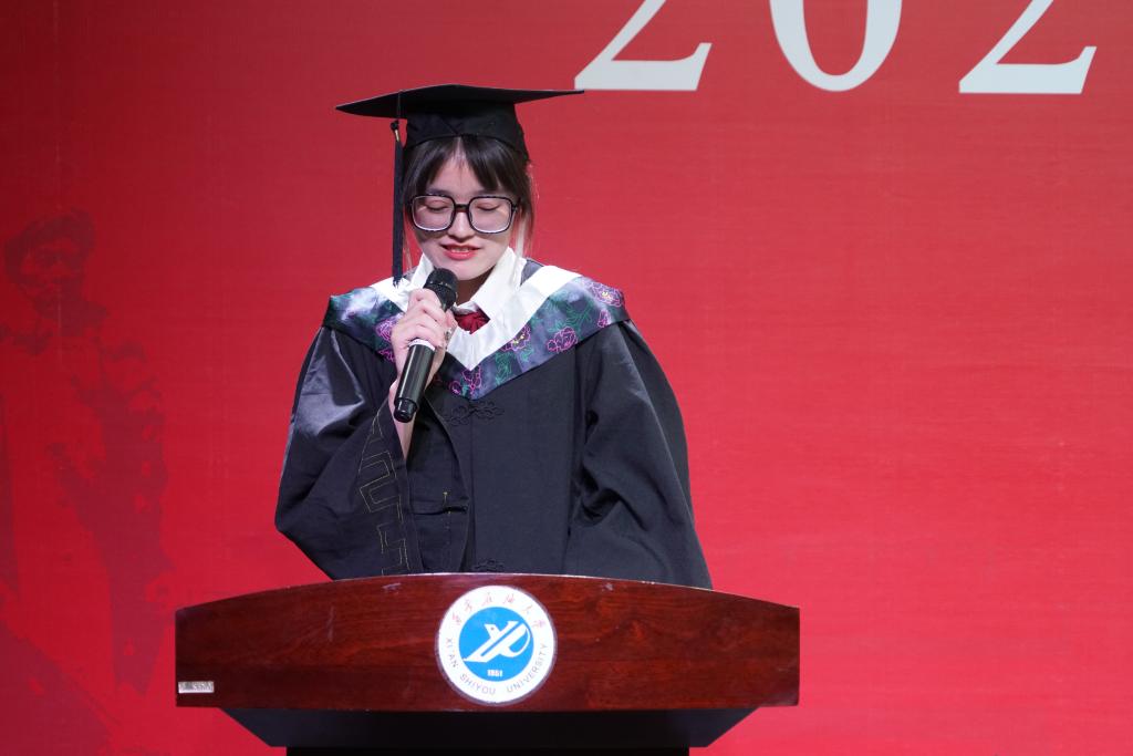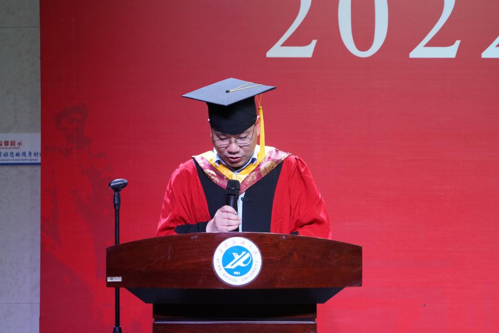 陳國祥副院長宣讀了學(xué)士學(xué)位授予的決定,根據(jù)《中華人民共和國學(xué)位條例》、《西安石油大學(xué)學(xué)士學(xué)位授予工作實施細(xì)則》等文件規(guī)定,授予閆佳慧等146名同學(xué)理學(xué)學(xué)士學(xué)位。
