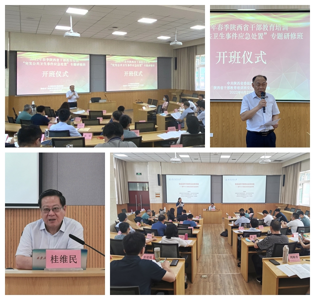 6月22日上午,由省委組織部主辦、我校干部教育培訓(xùn)基地承辦的2022年春季陜西省干部教育培訓(xùn)“突發(fā)公共衛(wèi)生事件應(yīng)急處置”專題研修班,在我校明德校區(qū)順利開班。繼續(xù)教育學(xué)院副院長(zhǎng)吳民生出席開班儀式并致辭,來自省直機(jī)關(guān)、地市政府的50名領(lǐng)導(dǎo)干部參加了開班儀式,儀式由班主任蘇楊主持。