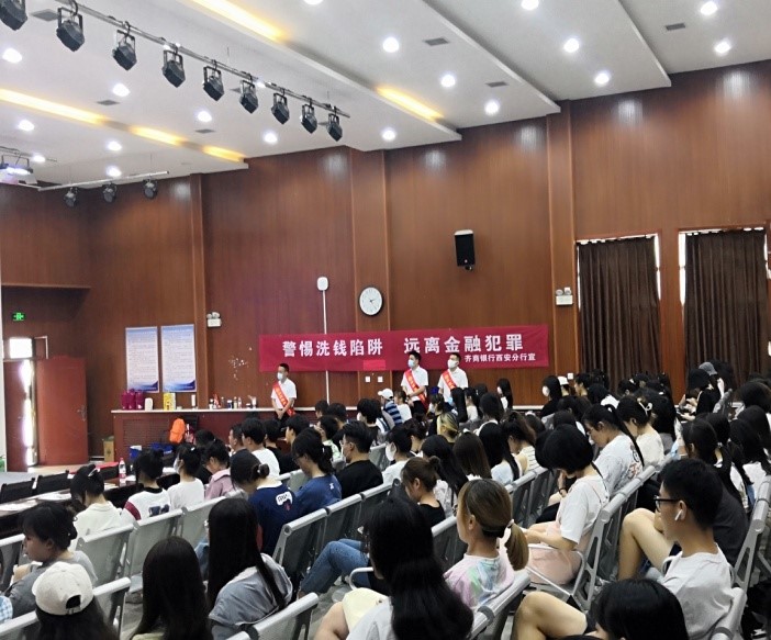 齊商銀行西安高新科技支行工作人員以講堂形式講解了洗錢的概念、類型及我國反洗錢發(fā)展情況,并結(jié)合具體案例詳細講解了當(dāng)前校園易發(fā)的網(wǎng)貸、刷單、游戲充值、網(wǎng)絡(luò)交友等詐騙形式及犯罪分子常用話術(shù)。重點針對反洗錢及斷卡行動進行了宣講,并根據(jù)當(dāng)前“斷卡”行動講解了出租、出借、出賣、購買銀行賬戶和身份證件將面臨征信限制或違法犯罪情況,希望青年學(xué)生提高風(fēng)險防范意識,抵制違法犯罪活動。