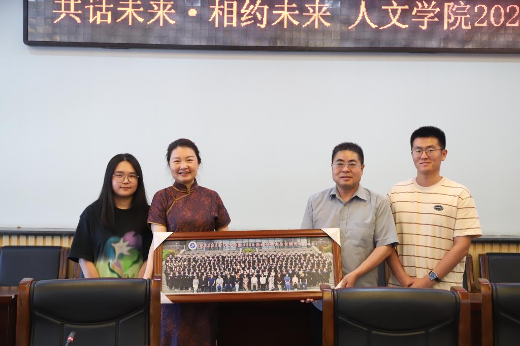 座談會結(jié)束后,人文學(xué)院畢業(yè)生獻(xiàn)上了他們對于學(xué)院的一片心意--2022屆全體本科畢業(yè)生合影;學(xué)院也為每位畢業(yè)生準(zhǔn)備了一份小禮物祝福大家前程似錦。