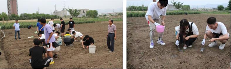 在一個半小時的時間里,參與活動的同學(xué)們生拿著鐵锨、水桶、玉米種子,三人成組,分工協(xié)作,翻耕松土、挖坑潤土、播下種子、填土覆蓋。在校園管理中心專業(yè)人員指導(dǎo)下,環(huán)環(huán)緊扣,有條不紊,井然有序,圓滿完成此次勞動實踐活動。大家切身體驗了玉米種植全過程,感知糧食來之不易,在心里也種下了一?!俺缟袆趧?、尊重勞動”的種子,期待生根發(fā)芽、開花結(jié)果!