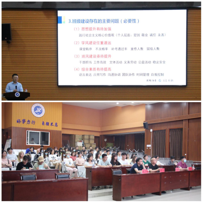 龐秉謙副部長圍繞加強班級建設(shè)的重要性和必要性、如何做好班級建設(shè)工作以及如何做一名優(yōu)秀的班級學生干部三個方面展開培訓。他指出,加強班級建設(shè)對推動落實立德樹人根本任務(wù),踐行“為黨育人、為國育才”使命具有重要意義,當前班級建設(shè)在思想提升、學風建設(shè)、班風建設(shè)、綜合素質(zhì)等方面依然存在不足。他強調(diào),加強班級建設(shè)一是要配齊配強班級“兩委”干部,做好學生干部的推薦、選拔和換屆工作;二是要規(guī)范班級工作的日常運行機制,以思想建設(shè)和作風建設(shè)為重點,定期開展集體學習研討;三是要制定目標計劃,總結(jié)經(jīng)驗不足,有針對性加強能力培養(yǎng),提升班級建設(shè)工作的實效性;四是要根據(jù)班級實際情況,制定年度建設(shè)目標計劃,明確分工、責任到人,跟蹤完成情況,及時反饋調(diào)整優(yōu)化。