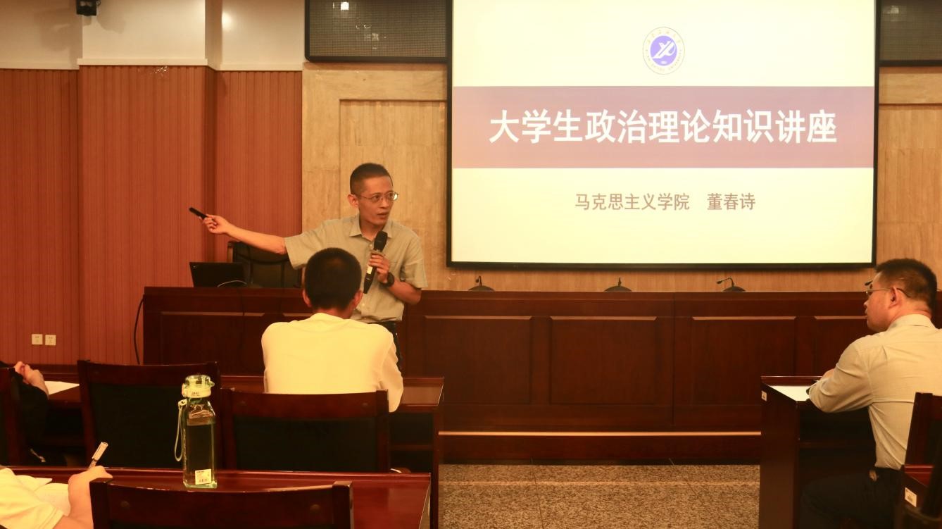 為進一步深入學習貫徹習近平新時代中國特色社會主義思想和黨的十九屆六中全會精神,加強青年學生的思想政治教育,提高學生的思想覺悟、政治素養(yǎng)和理論水平,5月26日晚,學生工作部聯(lián)合馬克思主義學院在鄠邑校區(qū)圖書館第一會議室舉辦了大學生政治理論知識講座。講座由馬克思主義學院副書記董春詩主講,學生工作部副部長龐秉謙主持。本科生學生代表50人現場聆聽了報告,講座采取騰訊會議的形式同步線上開展,各院(系)組織本科生進行了線上學習。