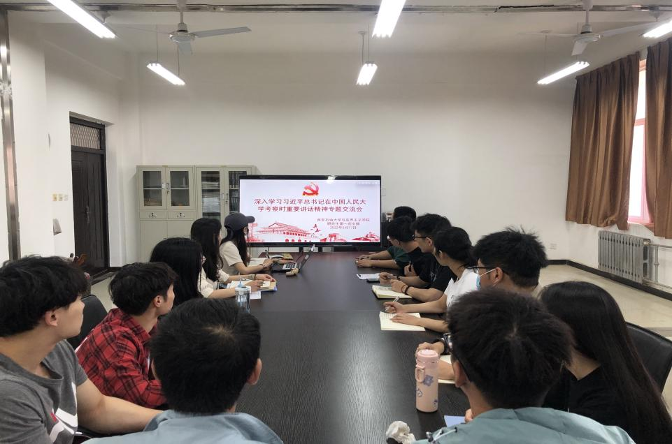 2022年5月17日上午,馬克思主義學(xué)院研究生第一黨支部在鄠邑校區(qū)崇文樓325會議室召開會議,專題學(xué)習(xí)習(xí)近平總書記在中國人民大學(xué)考察時重要講話精神,會議由黨支部宣傳委員劉笑含主持,支部全體黨員、積極分子參加。
