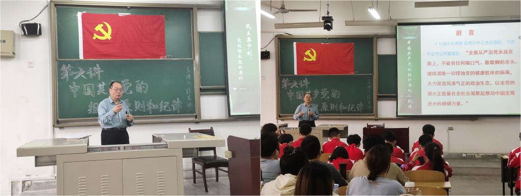 課堂上,彭革偉老師以黨的十九屆六中全會精神為切入點,結合我黨發(fā)展的歷程,對中國共產(chǎn)黨的組織原則和紀律進行了全面的闡述。多次引用習近平總書記的重要講話,深入淺出地為同學們講述了嚴守黨的紀律的重要性和現(xiàn)實意義。他強調(diào),黨的紀律是維護黨的團結統(tǒng)一,保持黨的先進性和純潔性,增強黨的凝聚力和戰(zhàn)斗力,實現(xiàn)黨的綱領、路線和任務的重要條件和可靠保證。他希望全體黨員牢記初心使命,堅定理想信念,踐行黨的宗旨,永遠保持同人民群眾的血肉聯(lián)系,始終同人民想在一起、干在一起,風雨同舟、同甘共苦,繼續(xù)為實現(xiàn)人民對美好生活的向往不懈努力,努力為黨和人民爭取更大光榮!他希望全體入黨積極分子都能用黨員的標準嚴格要求自己,積極向黨組織靠攏,爭取早日成為一名光榮的共產(chǎn)黨員。
