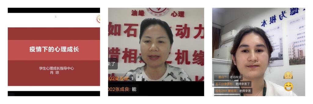 為進(jìn)一步落實(shí)我校第七屆“陽光護(hù)航”心理育人季活動(dòng),扎實(shí)做好疫情期間學(xué)生心理健康教育工作,促進(jìn)學(xué)生心理成長(zhǎng), 5月9日19:00我校學(xué)生心理成長(zhǎng)指導(dǎo)中心主任肖瓊教授在騰訊會(huì)議舉辦《疫情下的心理成長(zhǎng)》專題講座。石油工程學(xué)院和研究生工作部學(xué)生代表、心理委員代表等近500名師生在線觀看學(xué)習(xí),講座由石油工程學(xué)院2020級(jí)輔導(dǎo)員祖力皮亞主持。