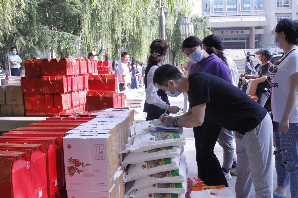 為響應陜西省委、省教育工委關(guān)于“雙百工程”優(yōu)質(zhì)農(nóng)產(chǎn)品進高校直通車的號召,落實鄉(xiāng)村振興,鞏固脫貧攻堅成果,增加永壽縣堅固村村民的收入,根據(jù)我校與永壽縣簽訂的“雙百工程”框架協(xié)議,校工會精心選購了一批永壽縣農(nóng)副產(chǎn)品,于5月7日在雁塔校區(qū)忠實廣場向廣大教職工以福利的形式發(fā)放,向辛勤工作在我校各個工作崗位上的全體教職工表示衷心的慰問,并送去校工會對全體教職工的良好祝福。